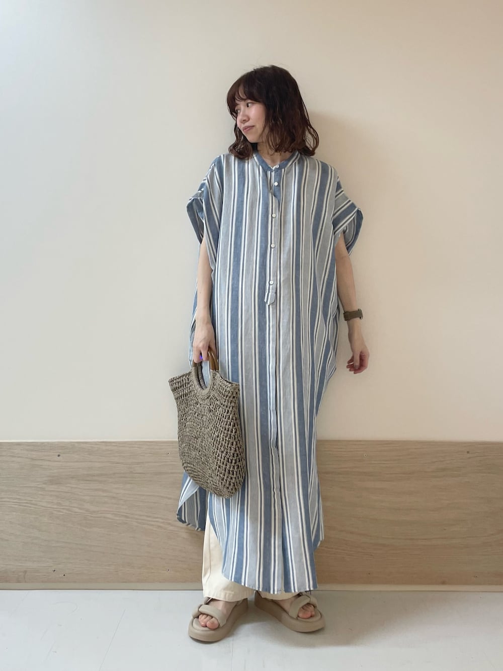身長:152cm 体型:ストレート パーソナルカラー:サマー [サイズ感] ワンピ:標準的 パンツ:標準的 [素材感,着心地] ワンピ:爽やかなブルーとリネン混の素材で涼しげな印象で着れるワンピースです。スリットしっかり入ってるので小柄な方もレイヤード楽しめます。二の腕もすっきりカバーしてくれる袖丈なので安心です。 パンツ:ストレートシルエットでワイドすぎずすっきり穿けるデニムです。生地感柔らかめなので動きやすくイージーパンツ感覚で穿けますSサイズで着丈ぴったりでした。 [ポイント] たくさん着回しの効くシャツワンピはこれからの時期重宝するアイテムです。 instagram @mayuhonda_