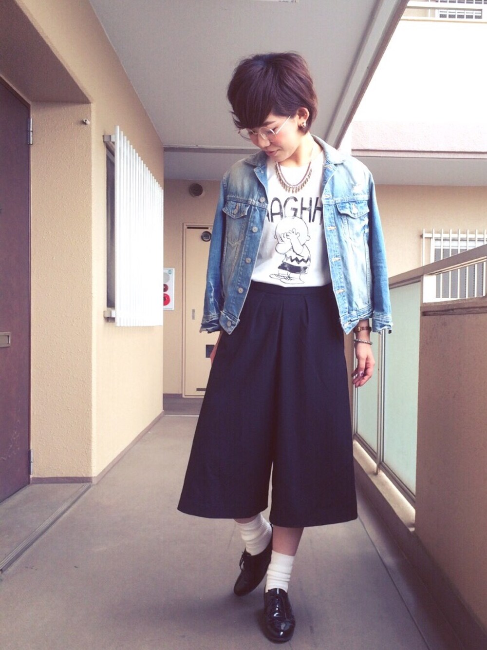 ガウチョにTシャツIN。 このチャーリーブラウンのTシャツは お気に入り♡