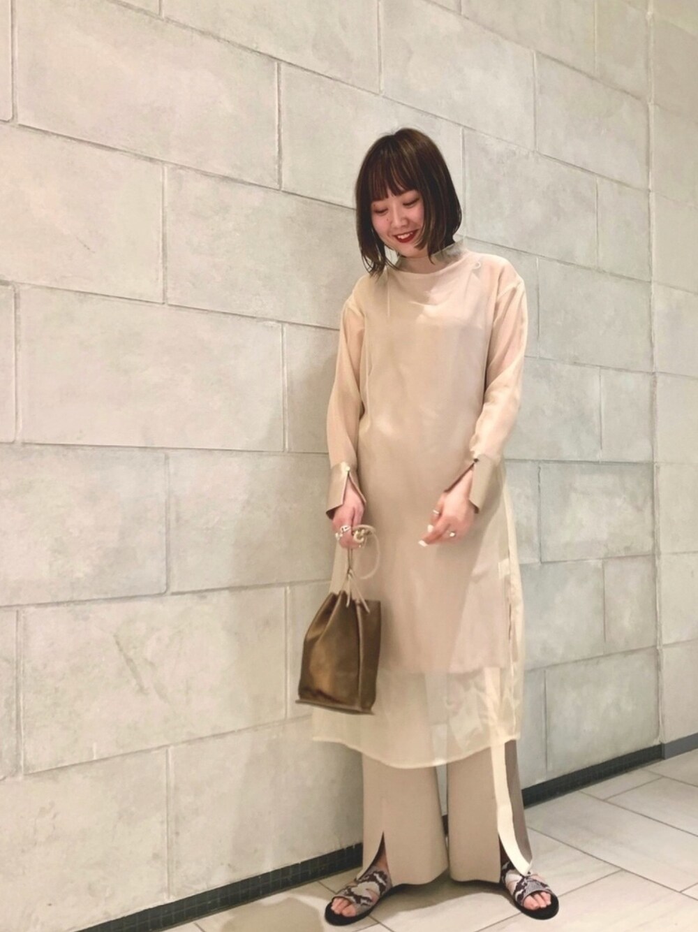 ベージュコーデは素材感や色使いでメリハリを。 シアーワンピースはインナーキャミもセットになっていて、キャミワンピを外に着たりTシャツなどとのレイヤードもできる着回し力抜群のワンピースです!