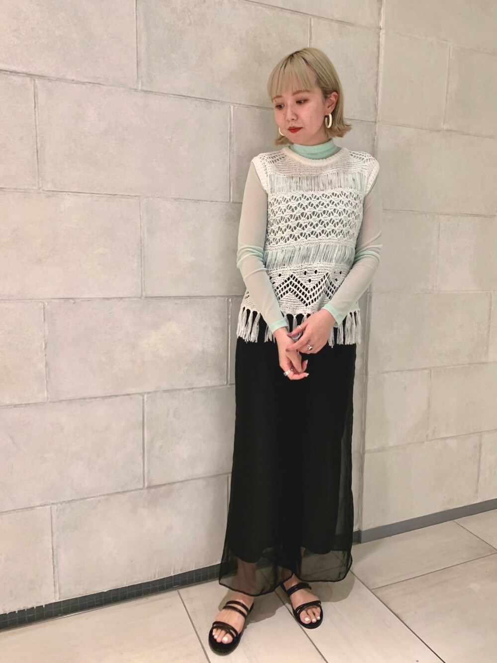 mari .のニット/セーター「マクラメニット プルオーバー」を使ったコーディネート