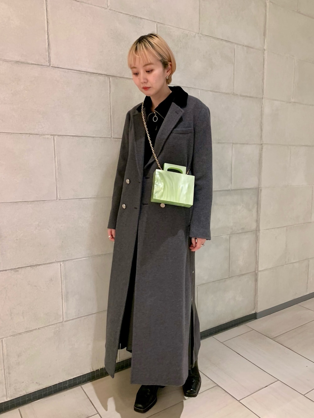 mari .のチェスターコート「サイド プリーツ チェスターコート」を使ったコーディネート