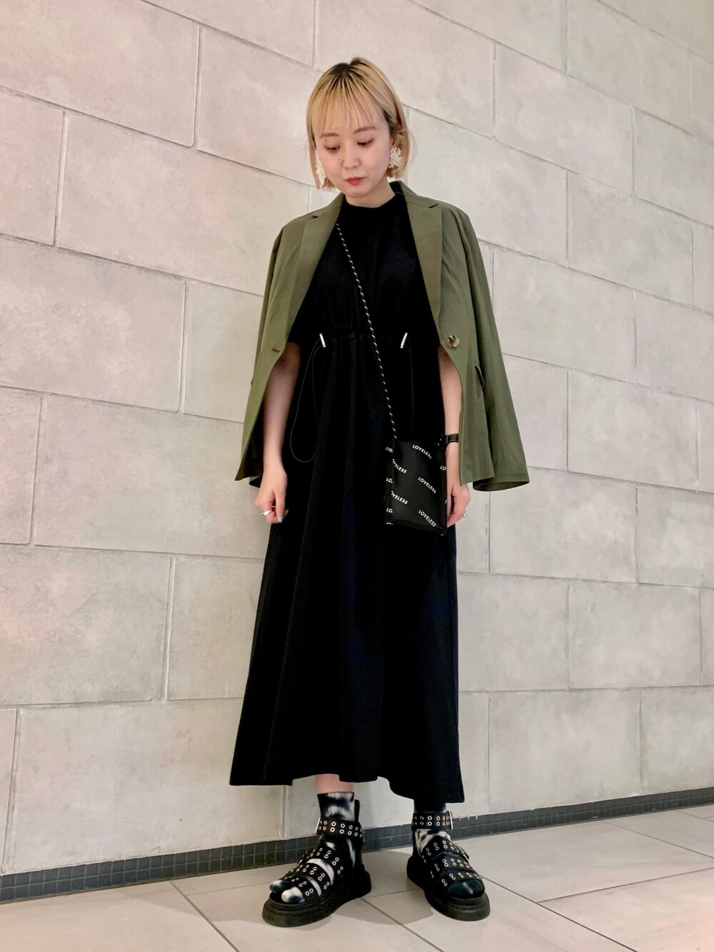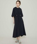 ラフすぎないカジュアルスタイリングには、軽めのジャケットを合わせて。 ワンピースはウエスト部分を絞って、1着でも綺麗に着れるデザインです。