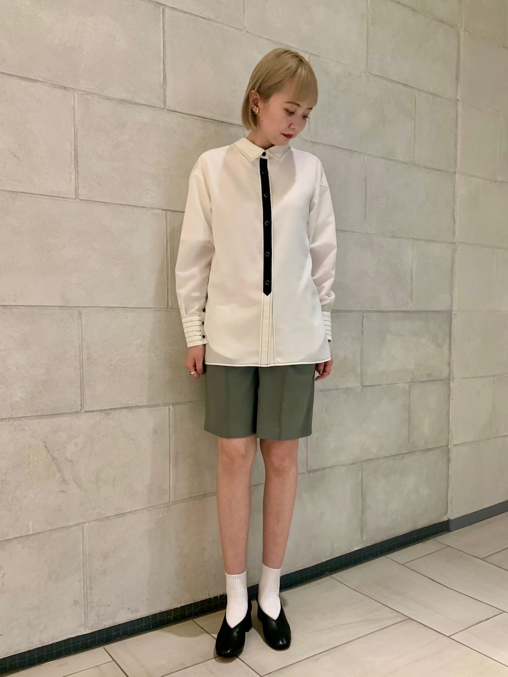 mari .のシャツ/ブラウス「カラー ステッチ 2フェイス シャツ」を使ったコーディネート