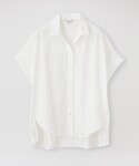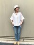 シャツ×デニムのシンプルコーディネート。 シンプルに見えるコーディネートも、シャツはサイドプリーツがポイントのアイテムを取り入れて。