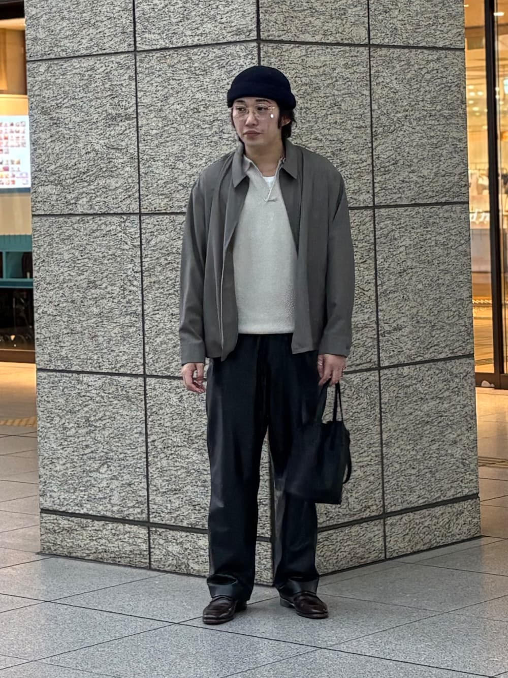 初夏まで着れるアウターと夏でも着れるトップス 最近、暖かくなったけど朝と夜は少し肌寒い。 そんな時に着れるアウターです。しかも、初夏ぐらいまで着れてウールの生地なので、光沢があり上品なアイテム。 スキッパーのトップスはシルクで上品さに全振りしてもいいし、カジュアルなパンツでも相性がいいです! 少しオーバーサイズなので、一枚でも着やすいし、今ぐらいの気温感なら重ね着でもいい丁度いいサイズ感です。