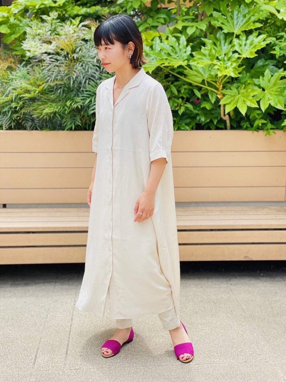 ユイのシャツワンピース「オープンカラーシャツワンピース」を使ったコーディネート
