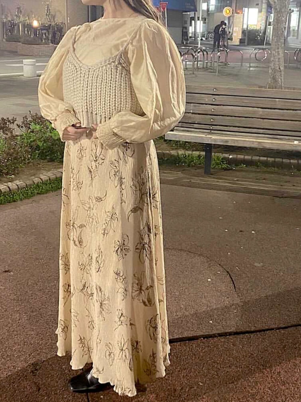 夜に外で撮ったからやっぱし色味分かりづらいかな〜、、(;_;) けどトップスはセットになってたしシアー素材でかわいい、、❤︎❤︎