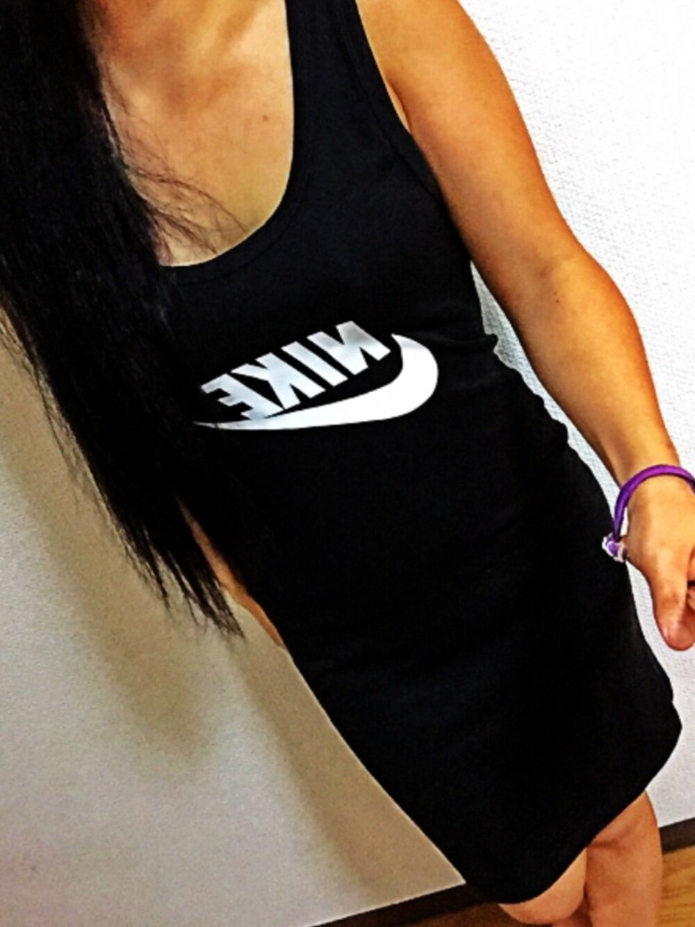 リメイクワンピース H&Mで300円で買ったワンピースに アイロンプリントでNIKEロゴ♡