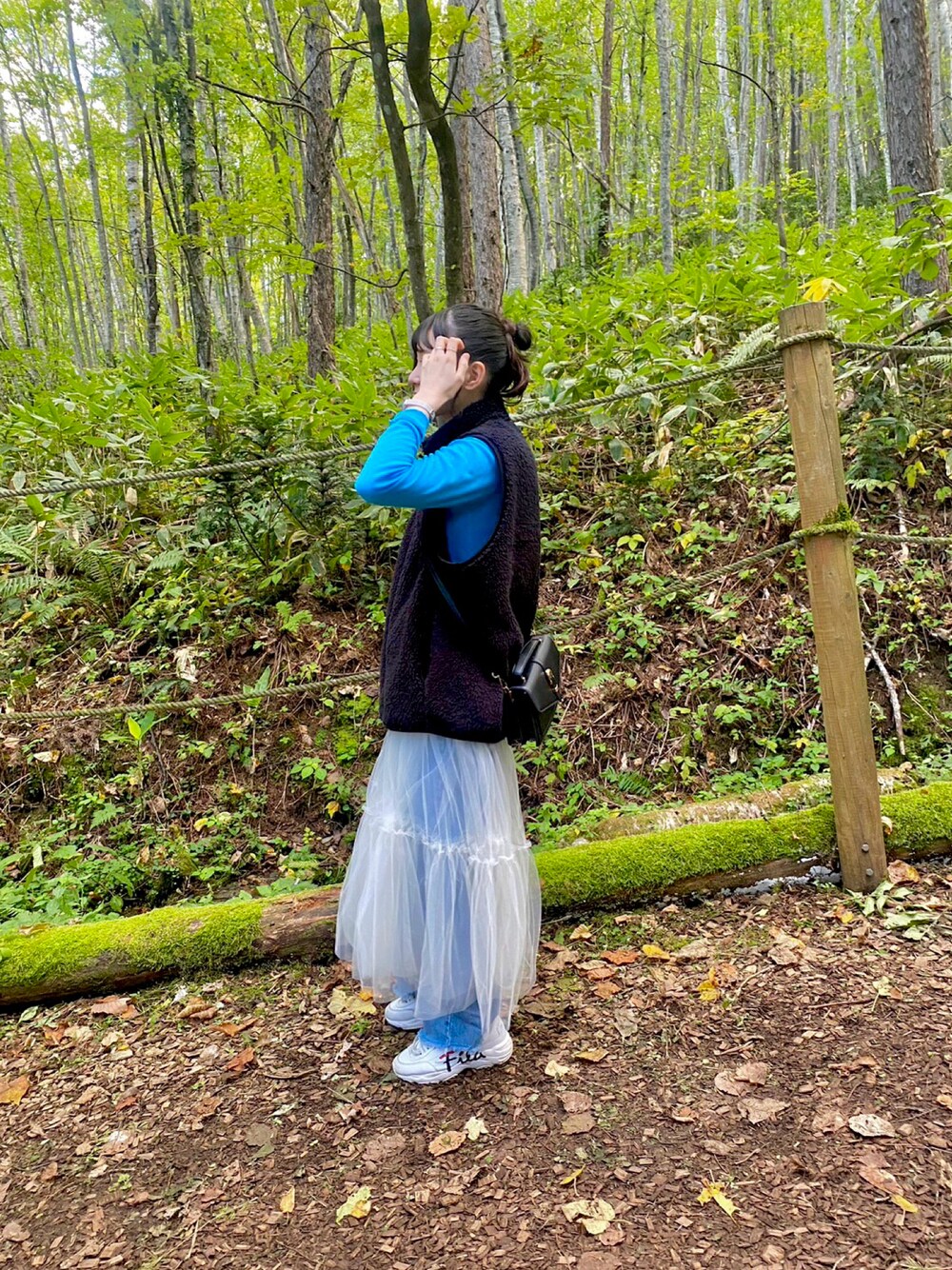 チュールスカートのレイヤードスタイルです。