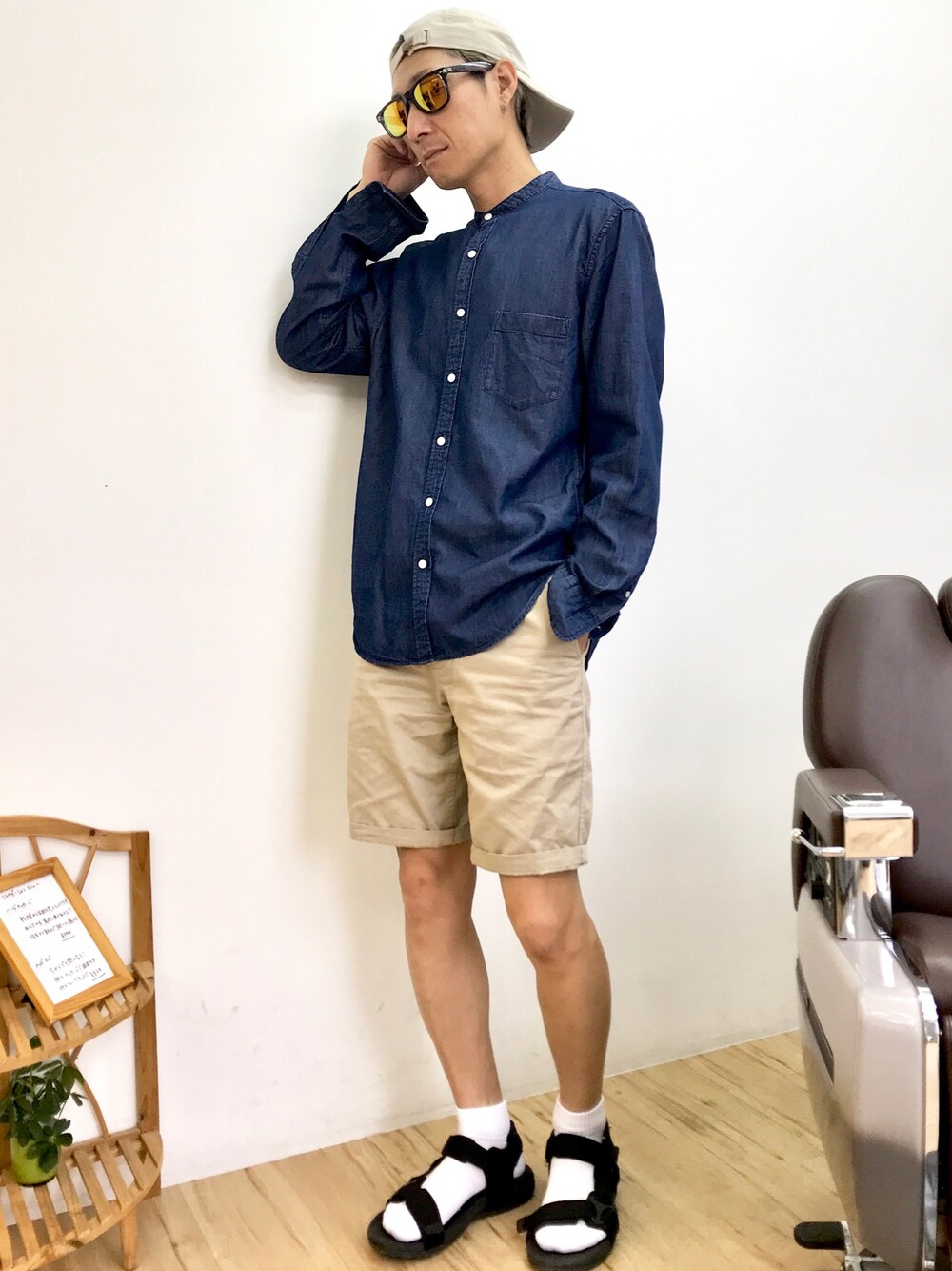 チョキさんのシャツ/ブラウス「【BACK NUMBER】日本製児島デニムバンドカラーシャツ 」を使ったコーディネート