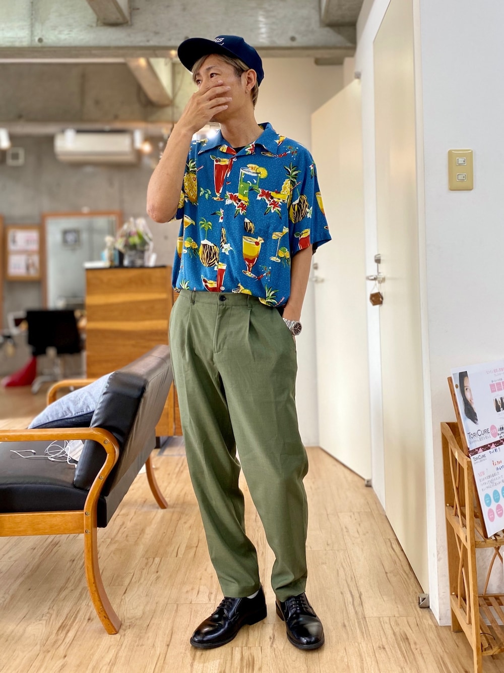 チョキさんのシャツ/ブラウス「CORISCO レーヨン 総柄 オープンシャツ (M1)」を使ったコーディネート