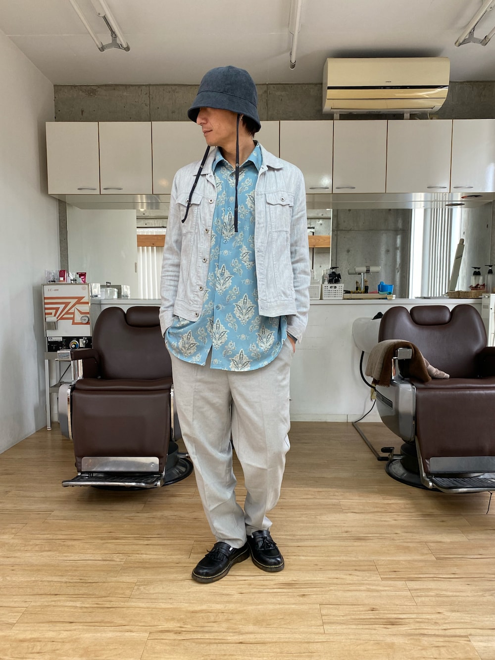 チョキさんのスラックス「ポリエステルポプリン / ワイド テーパード パンツ ウエストゴム(セットアップ対応)」を使ったコーディネート
