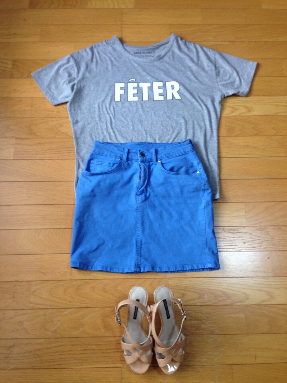 大きめのTシャツにタイトなスカート