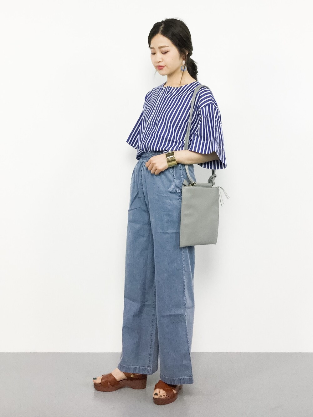 isaのシャツ/ブラウス「コットンピケストライプブラウス」を使ったコーディネート