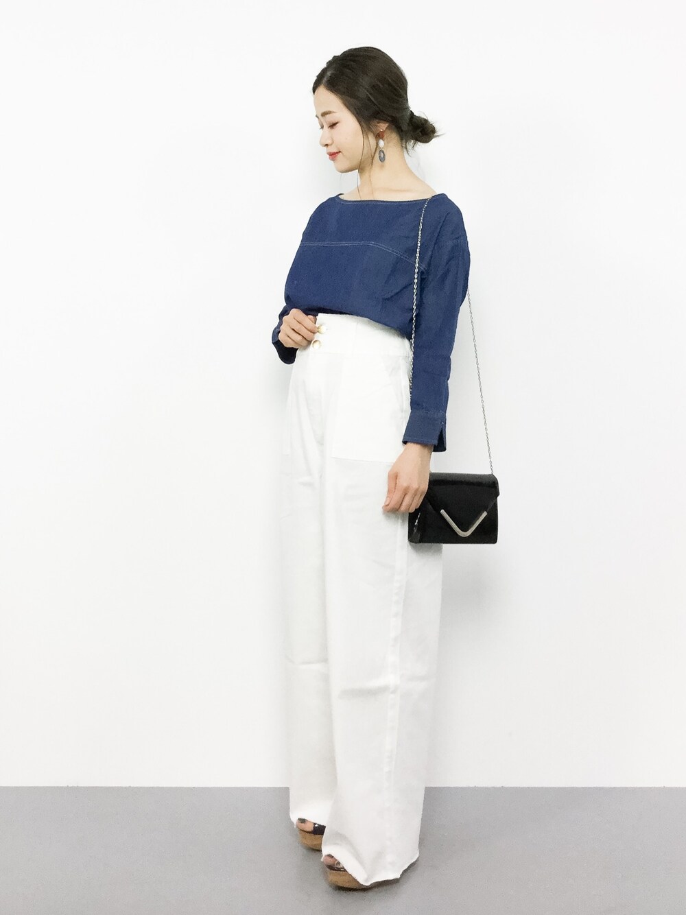isaのシャツ/ブラウス「デニムボートネックTOPS」を使ったコーディネート