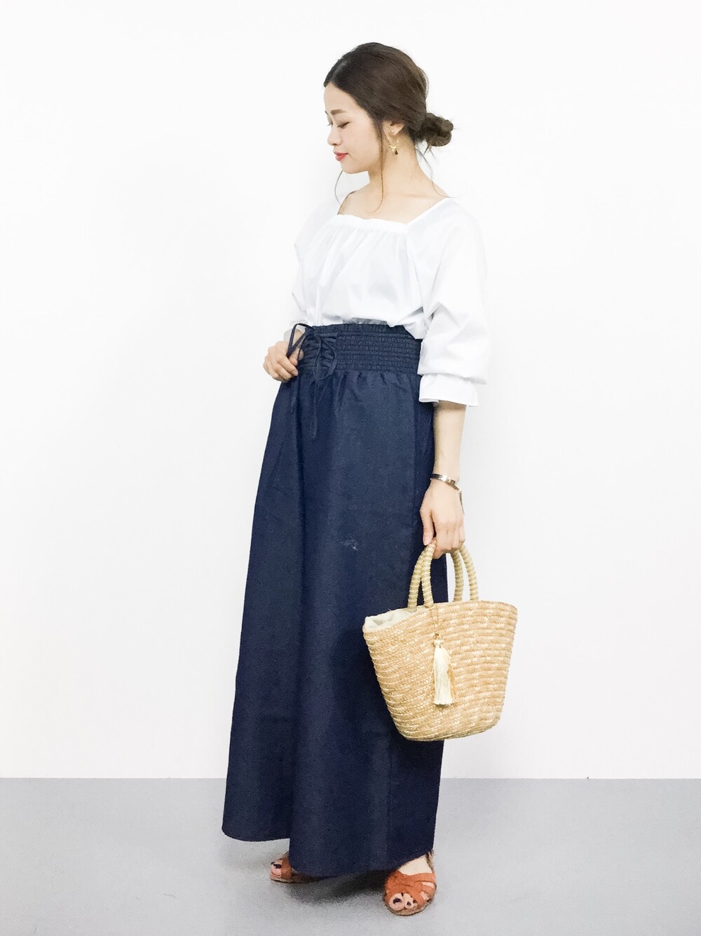 isaのシャツ/ブラウス「フリルスリーブ2wayオフショルブラウス」を使ったコーディネート