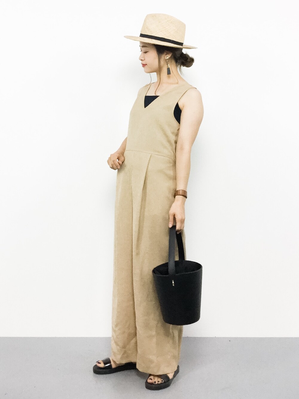 isaのワンピース「バックリボンリネンライクオールインワン」を使ったコーディネート