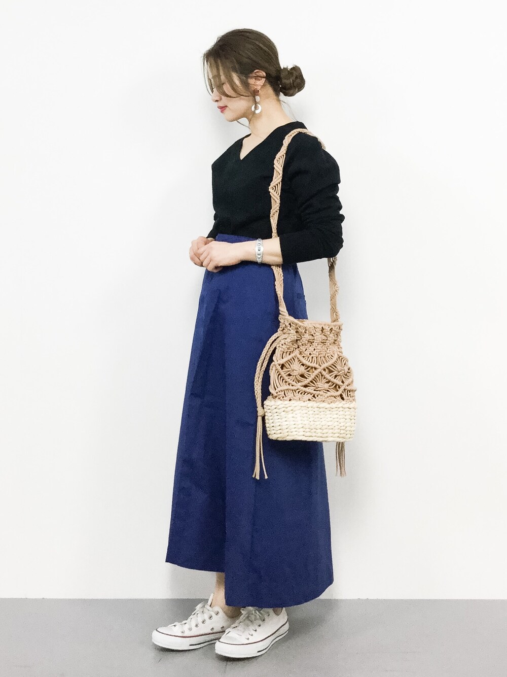 ぱりっとした質感のフレアスカートはボリュームがあるのでトップスインスタイルがおすすめです♪