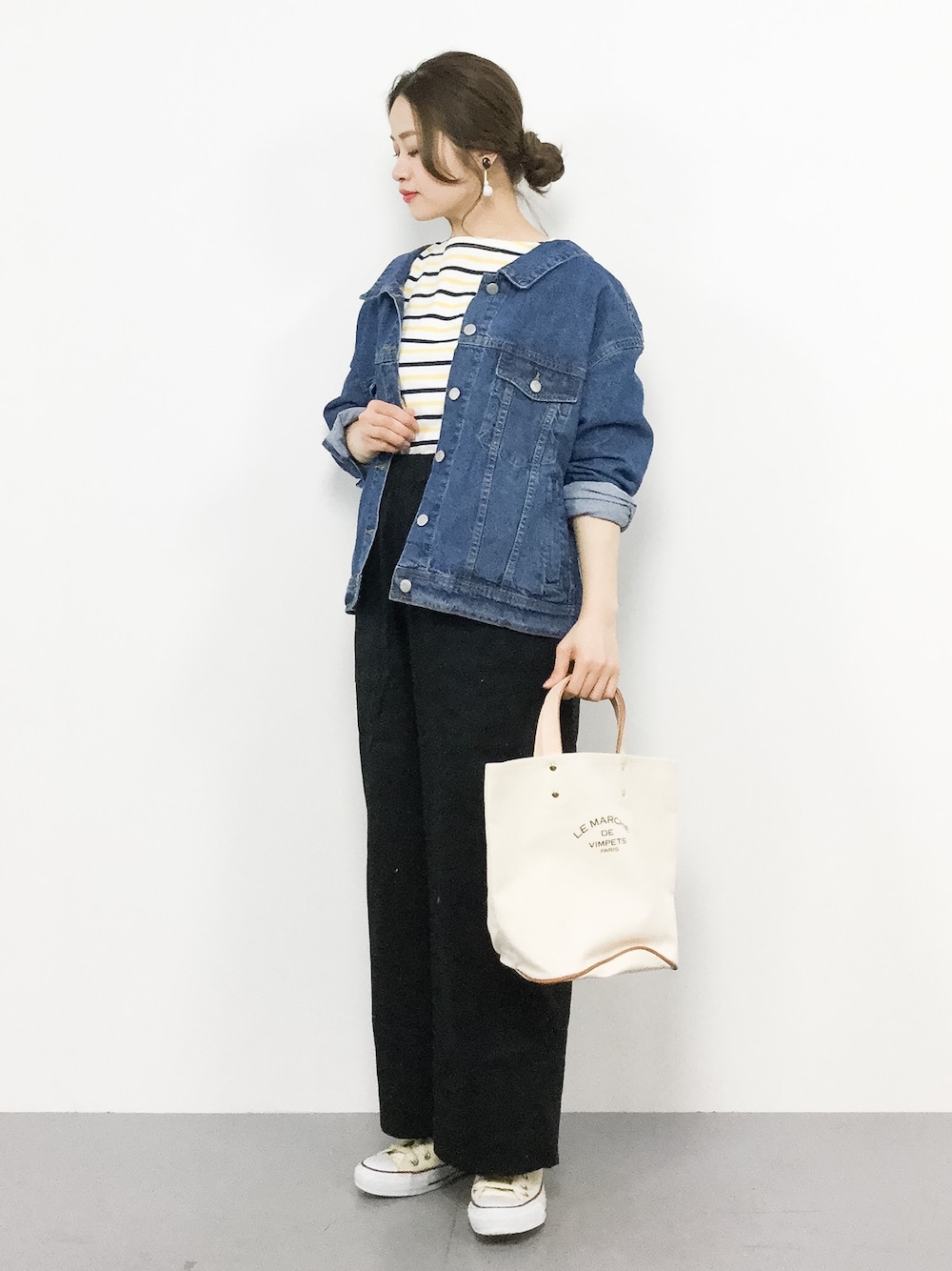 デニムジャケットは後ろがレースアップになっているので カジュアルだけど女性らしく華やかな印象になります♪