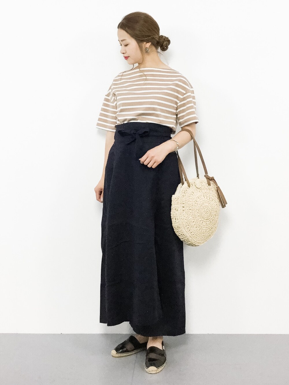 isaのTシャツ/カットソー「ボーダーボートネックtee」を使ったコーディネート