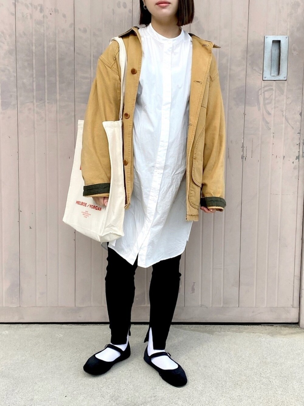 古着を使ったシンプルコーデ ハンティングジャケット やっと着れる季節になった 襟元と手元のコーディロイが可愛すぎる #妊娠10ヶ月 #妊娠38週 ▷▷▷isam.et