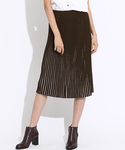 スカ刺繍のスウェットとニットプリーツスカートのカジュアルコーデ