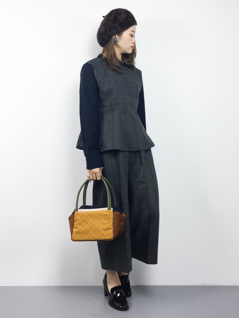 2ピースセットアップ×ベレー帽