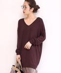 Vネックニット×プリーツスカート