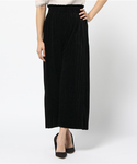 ドット柄フェザーニット×ベロアプリーツパンツ