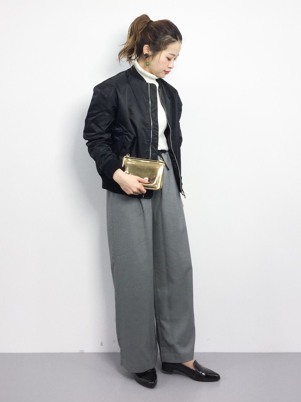 メンズライクなジャケットなので ハイネックをウエストインしてすっきりとさせました♪