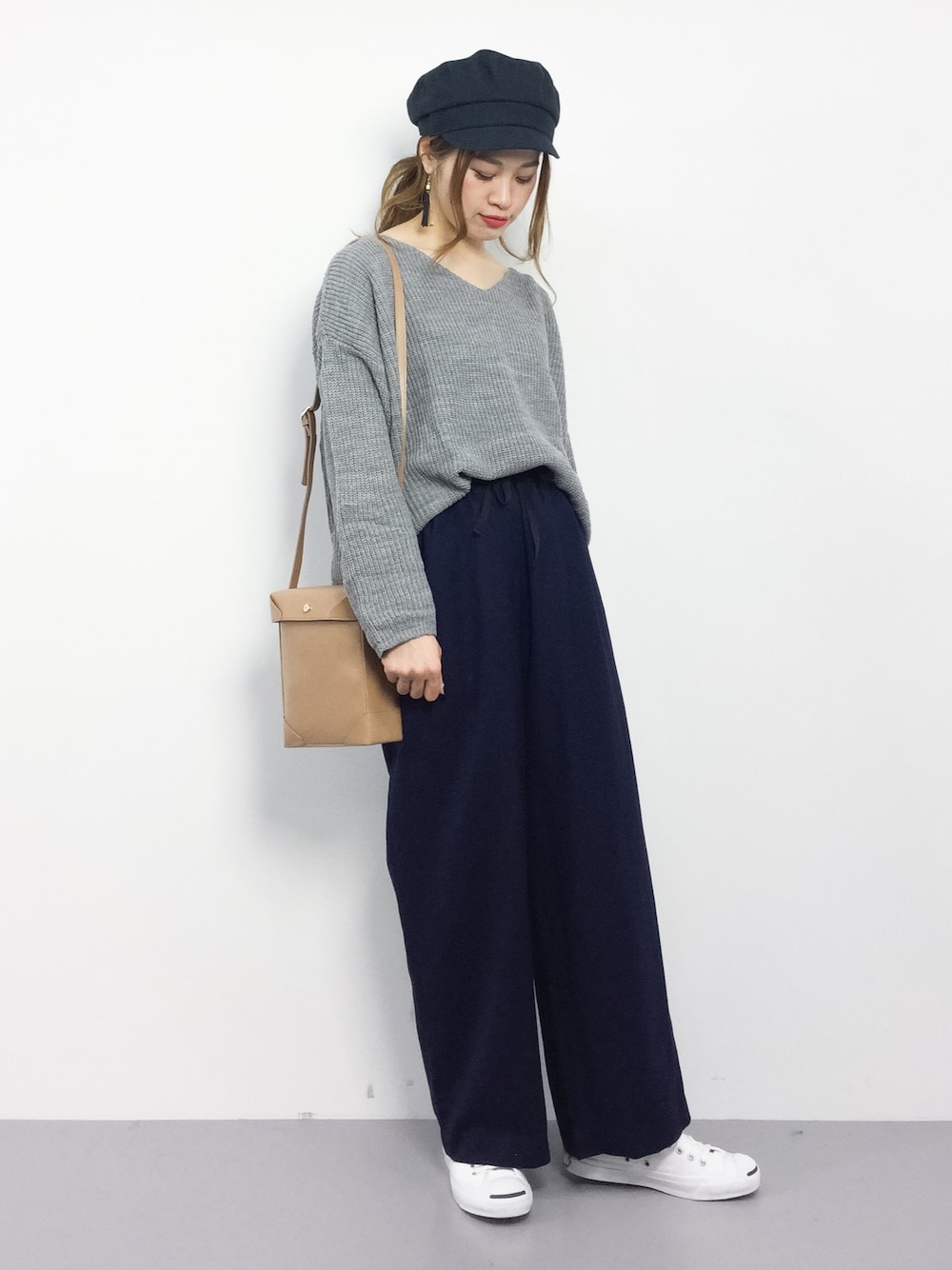 ゆったりコーデにマリンキャップとスニーカーを合わせて 大人の休日スタイルにしました!