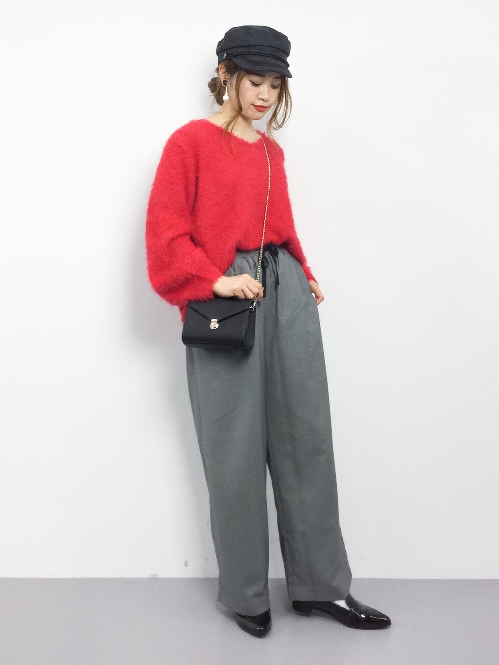 ふんわりとしたニットにワイドパンツを合わせてゆるカジスタイルにしました♪