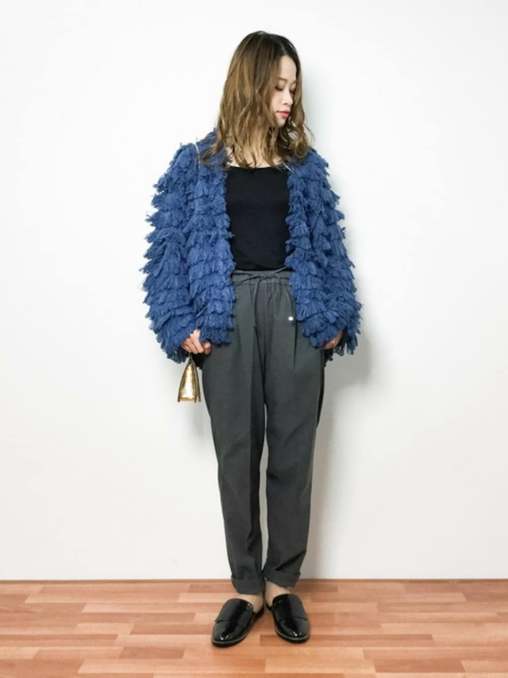 今年トレンドのループガーディガンはゆったりとしたサイズ感なので テーパードパンツを合わせてすっきりとさせました!