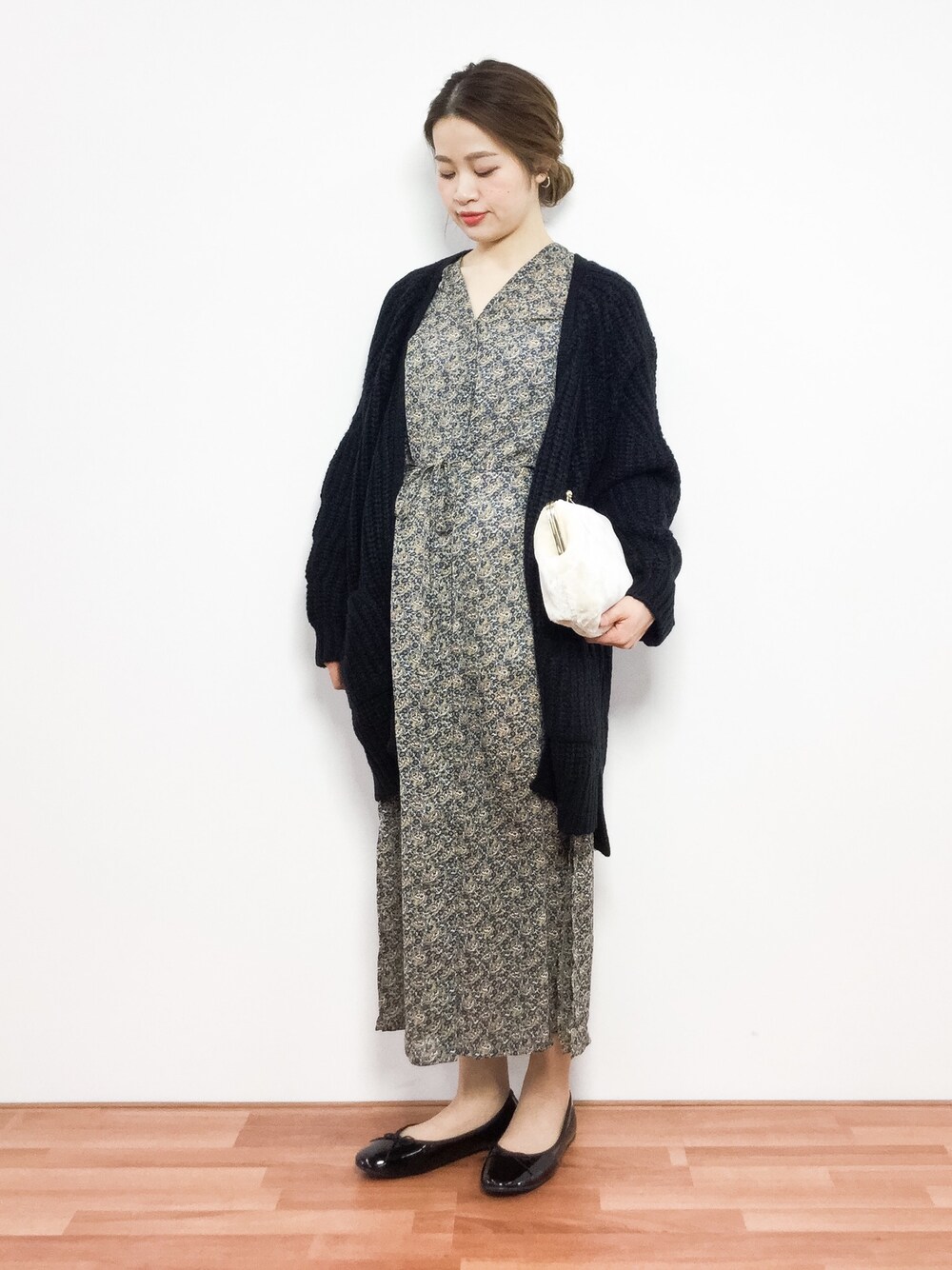 オトナカジュアルコーデ◎ ペイズリー柄が可愛いロングワンピースです。 総柄ですがこちらの色味はベージュがベースなので柔らかい印象で大人っぽかったです♪