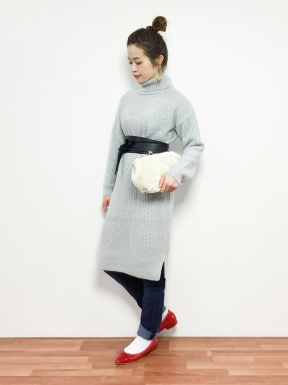 isaのワンピース「ブ―クレ―ケーブルニットワンピース」を使ったコーディネート