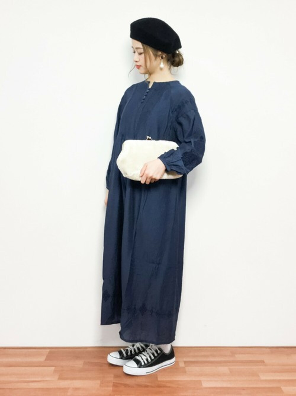 リラックスコーデ◎ ゆったりとしたマキシワンピースです。 袖と裾に刺繍が施されていて可愛かったです♪