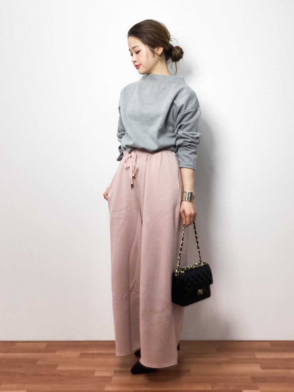 カジュアルコーデ◎ ワイドパンツはスウェット素材なのでリラックスしたい日におすすめです♪
