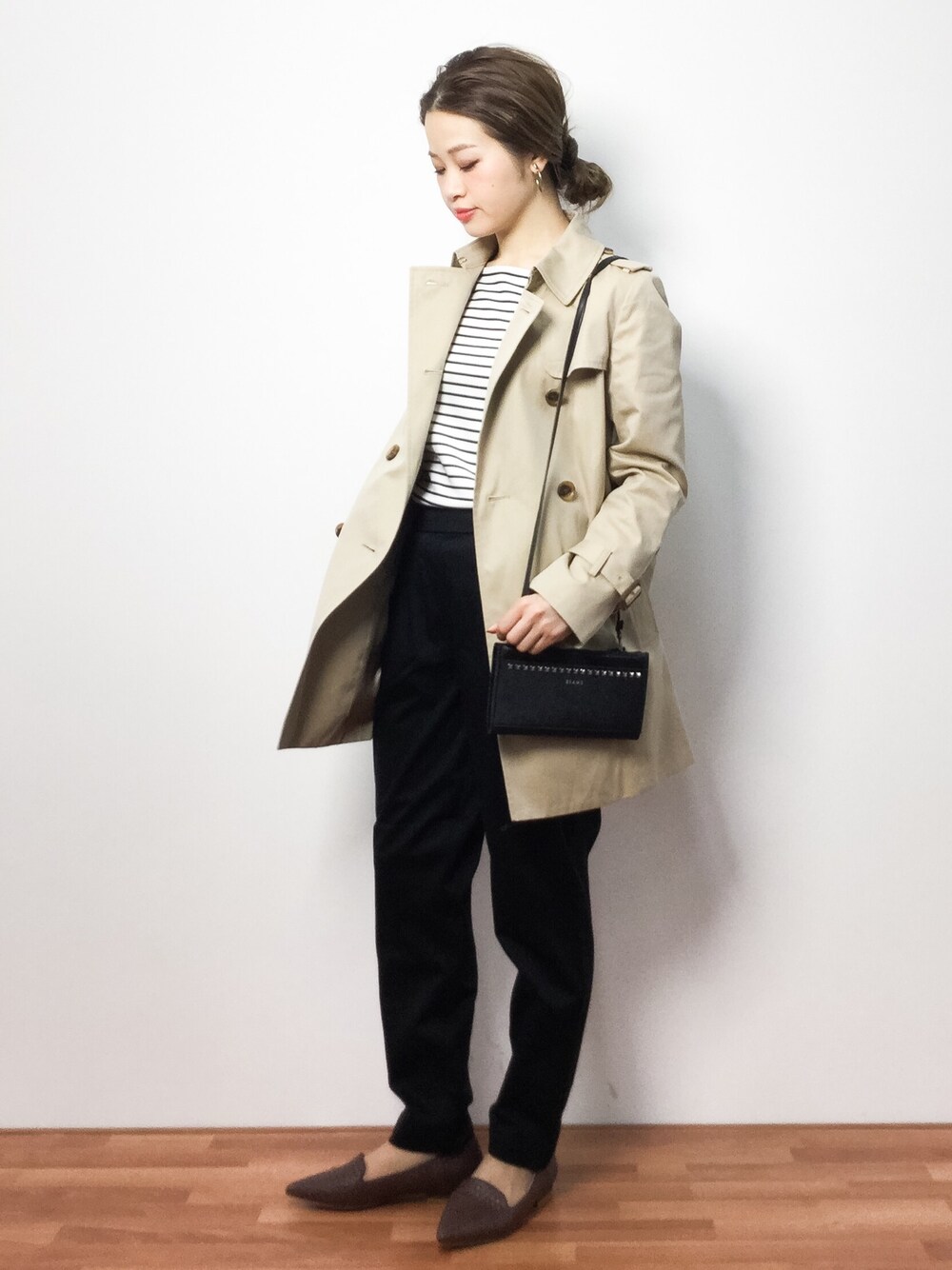 トレンチコートとボーダートップスのカジュアルコーデ◎