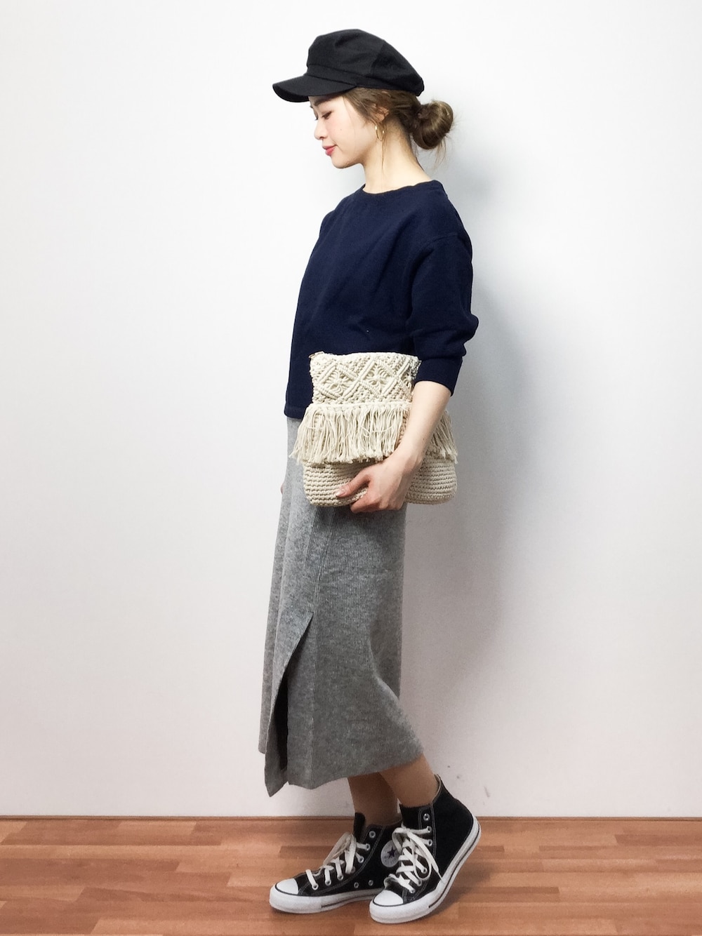スウェットとリブスカートのオトナカジュアルコーデ◎