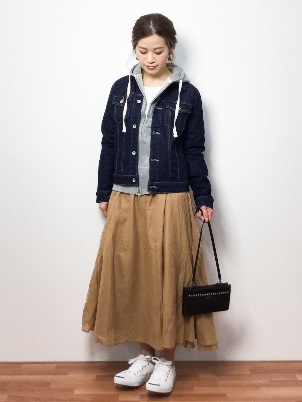 デニムジャケット×パーカーのカジュアルコーデ◎
