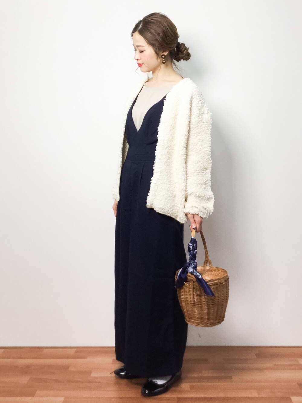 ループ編みブルゾンとオールインワンの大人カジュアルコーデ◎