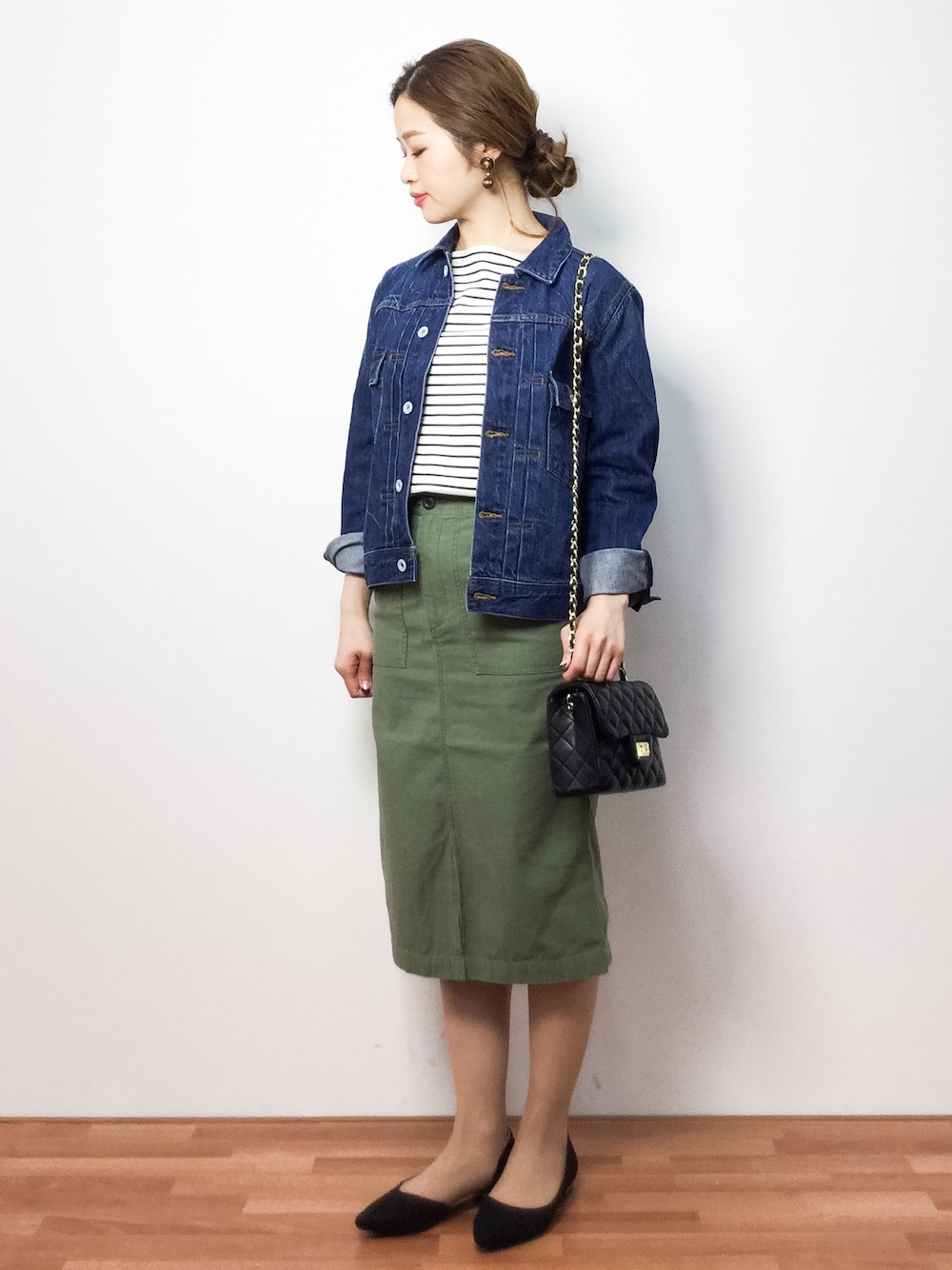 デニムジャケットとタイトスカートの大人カジュアルコーデ◎
