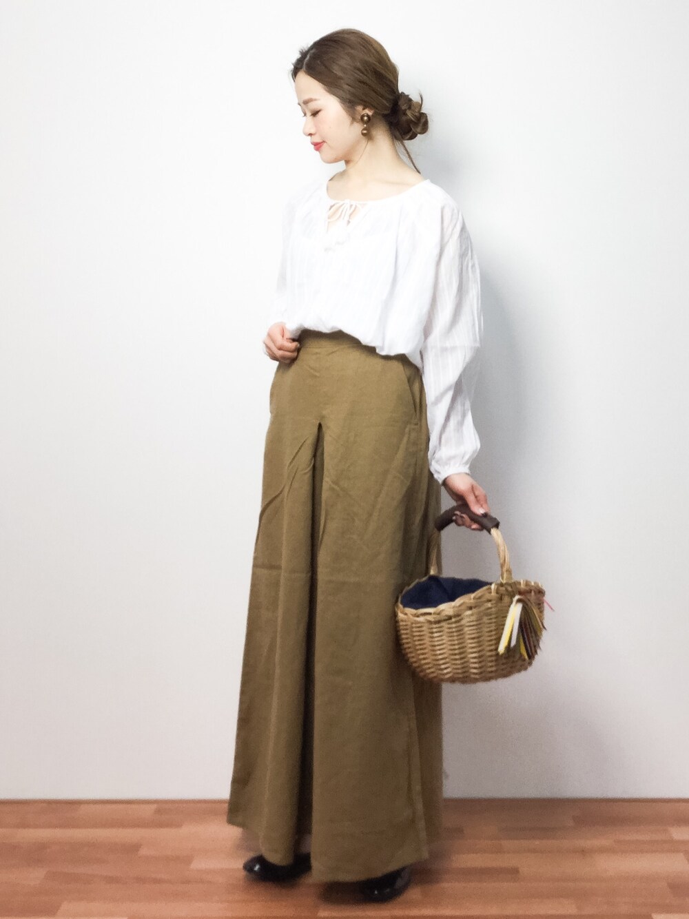 刺繍ブラウスとワイドパンツのシンプルコーデ◎