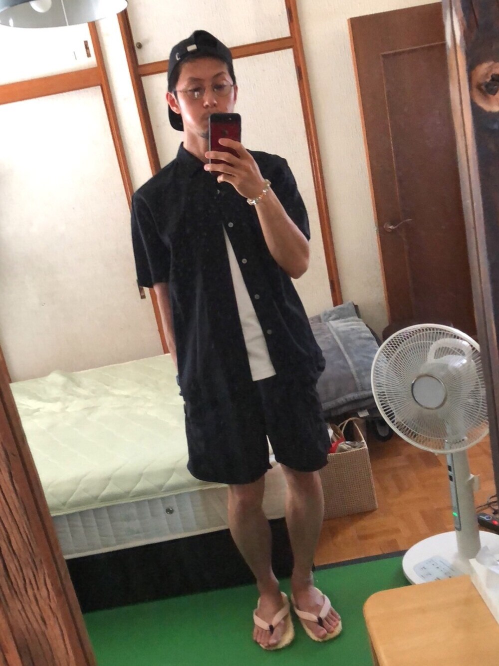 暑いっ💦 夏のブラックコーデ🌞 今年初ショートパンツです。 家では基本、わらじで過ごしています笑 休日は髪のセットがめんどうだからキャップがイイね☺️
