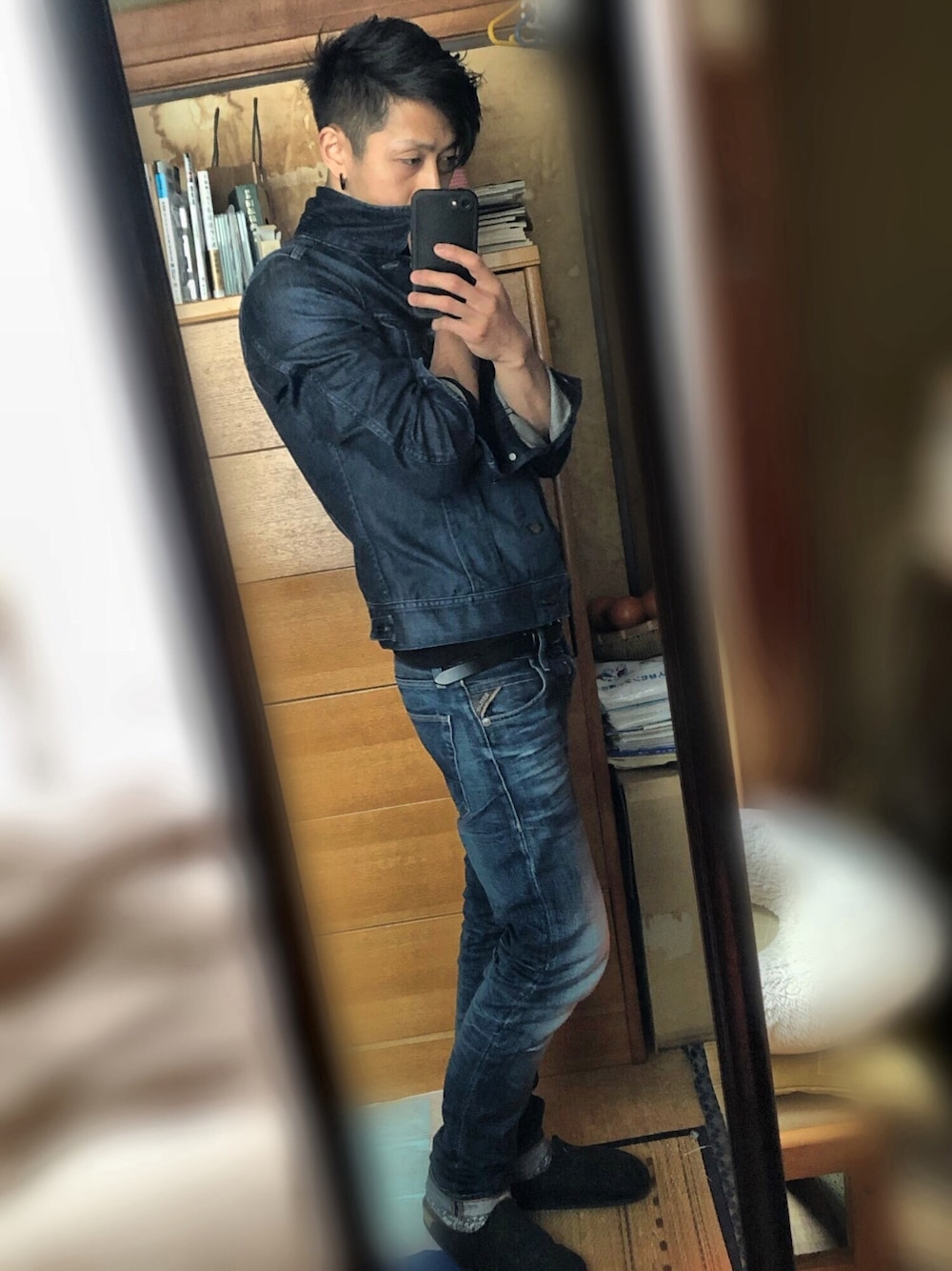 たまにはデニムのセットアップで。 さすがにこれで外はまだ寒いので ダウンを着ましたが 春になったら こんな感じも良いかも