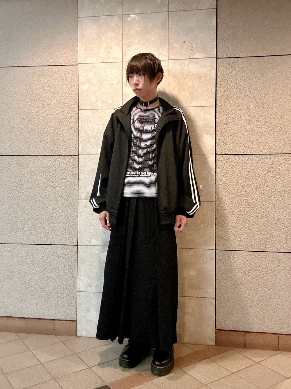 いぬさん。のブルゾン「ルーズシルエットバルーンスリーブフェイクサスペンダードレープトラックジャケット」を使ったコーディネート