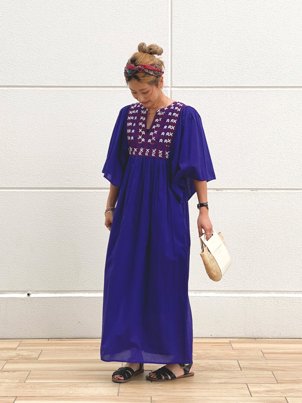 haru(JACK & MARIE グランベリーパーク)のワンピース「Saramallika コットンブロックパターンドレス 020421SG3」を使ったコーディネート