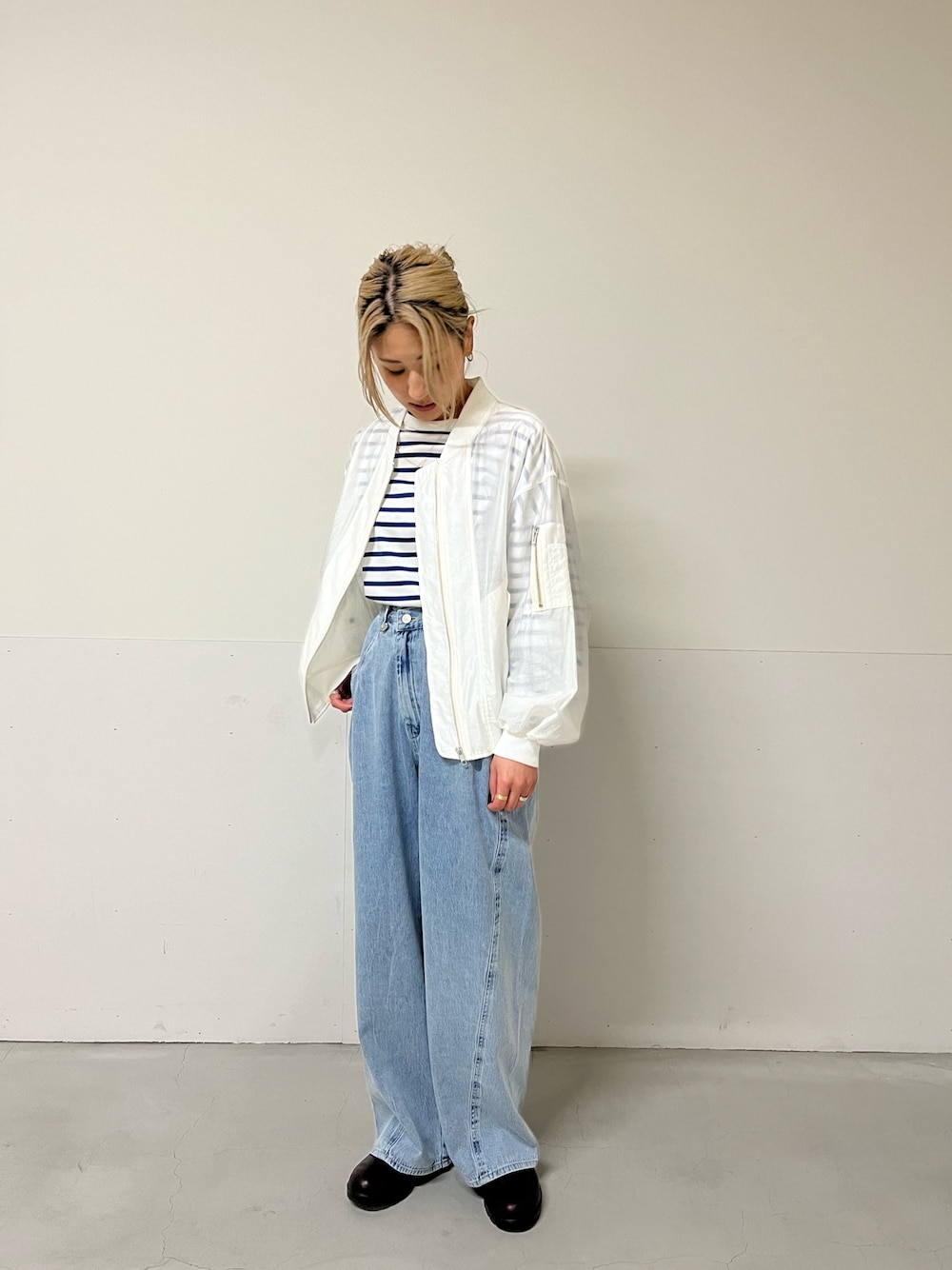 . . 💙💙💙💙💙 . シアー素材が女性らしさもあるので デニムと合わせてもメンズライクになりすぎないアイテム! 薄手で軽いのでこれから先の羽織でも重宝しそうです👏 カーキ,ブラックも可愛い🤔💭💚🖤 パンツは程よいゆるさ! ウエストも締め付けなくてリラックスして履けます🩵🫧 .