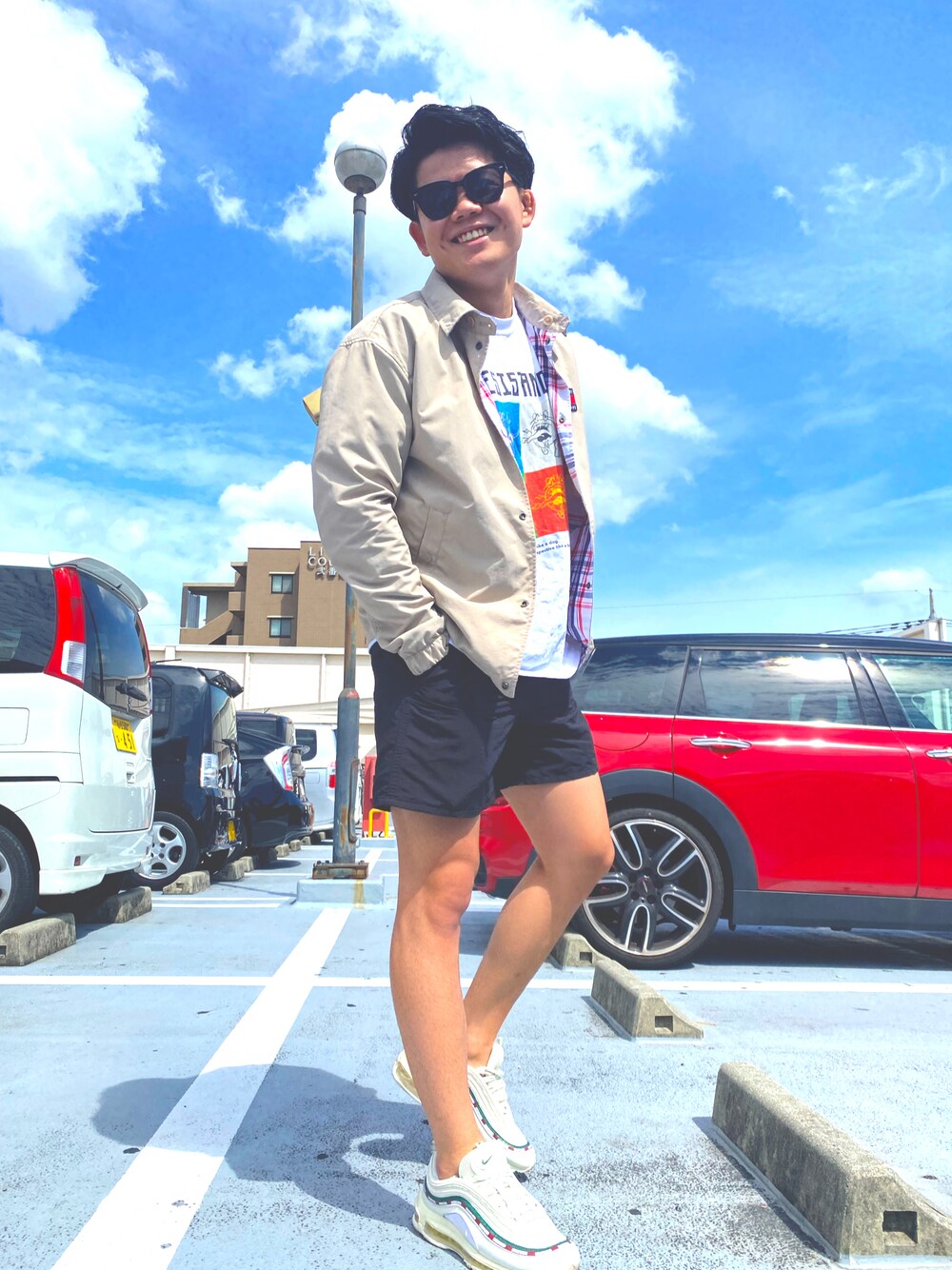 松岡陸のスニーカー「ナイキ エア マックス 97 メンズシューズ / Nike Air Max 97 Men's Shoes 921826-101 White」を使ったコーディネート