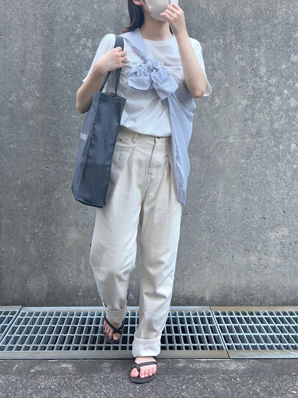 𝗮𝗼𝗶のシャツ/ブラウス「シアーストライプバンドカラーボリュームスリーブシャツ」を使ったコーディネート